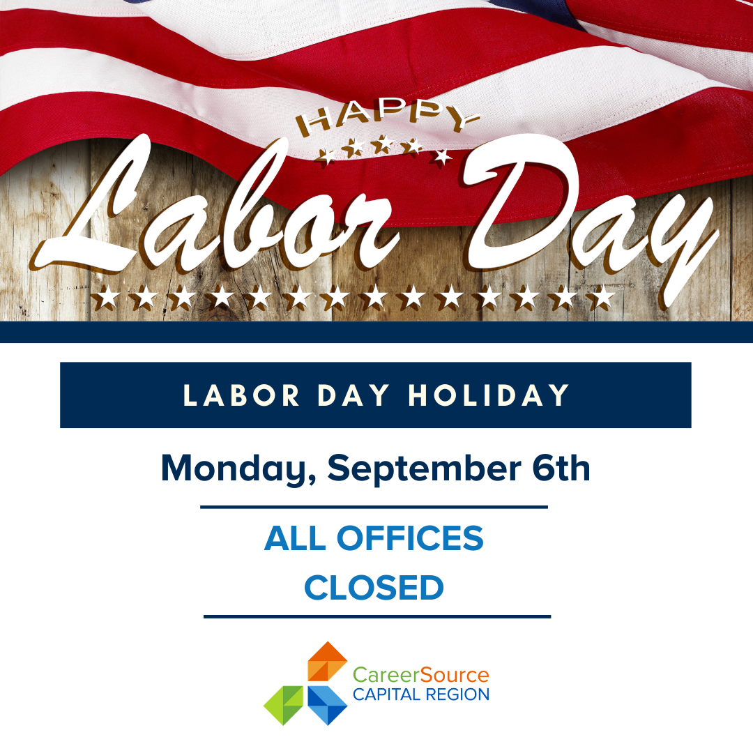 The Career Centers are closed today for the Labor Day holiday and will re-open tomorrow at 8:30am. Please call (850) 922-0023 for an appointment. We look forward to assisting you!