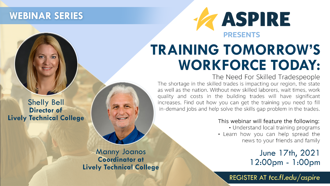 This webinar features Lively Technical College's Shelly Bell, Director and Manny Joanos, Coordinator, as they discuss the variety of local training programs available for individuals seeking to fill in-demand jobs.
