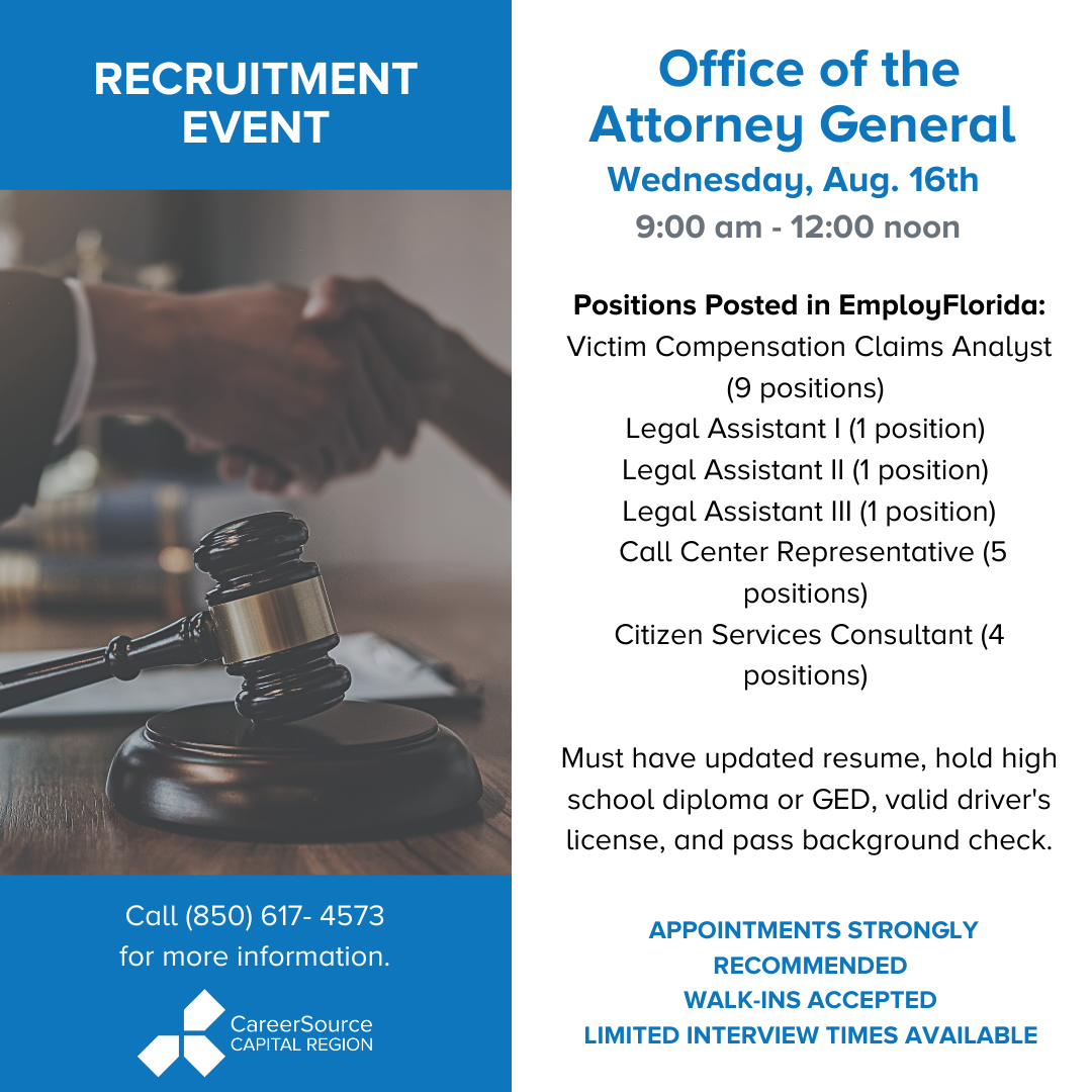 Leon Career Center 2601 Blairstone Road Building C, Suite 200 Tallahassee, FL 32301