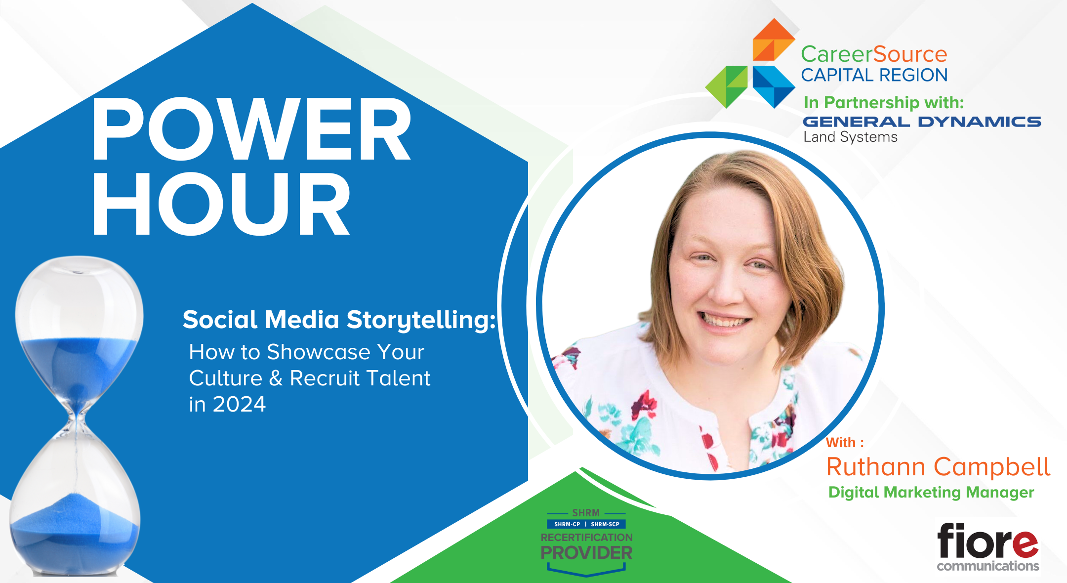 Ruthann Campbell, Digital Marketing Manager, at Fiore Communications will present "Social Media Storytelling: How to Showcase Your Culture and Recruit Talent in 2024."