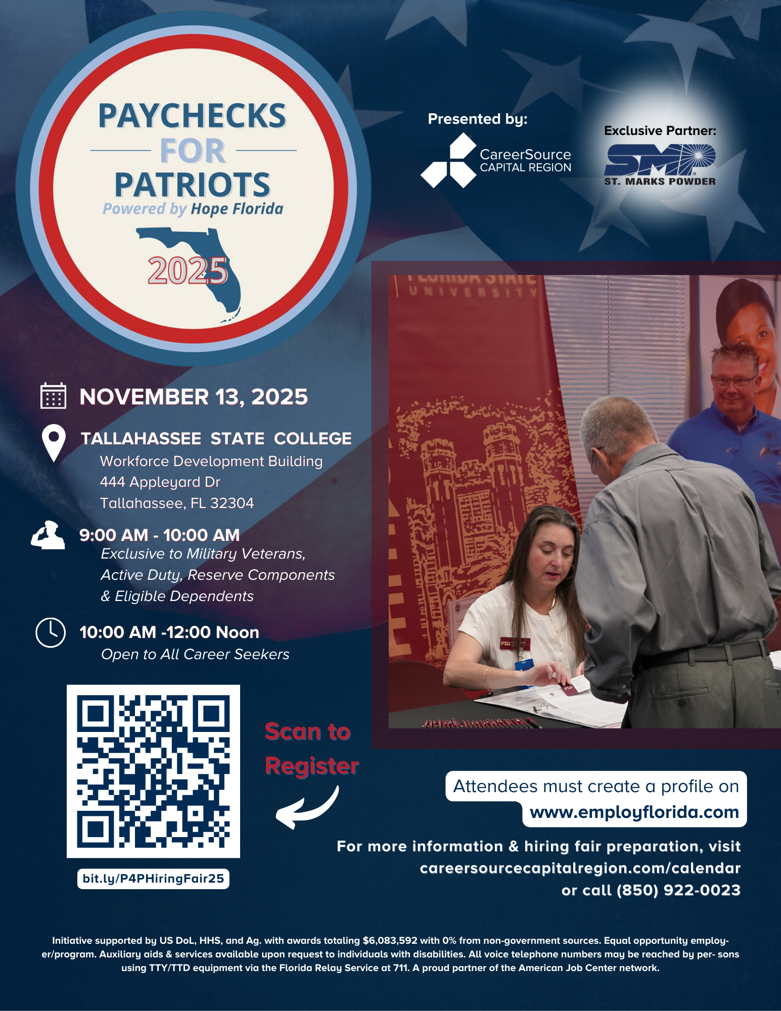 Whether you're an experienced professional looking for a change or just starting your career journey, the Paychecks for Patriots Hiring Fair has something for everyone.