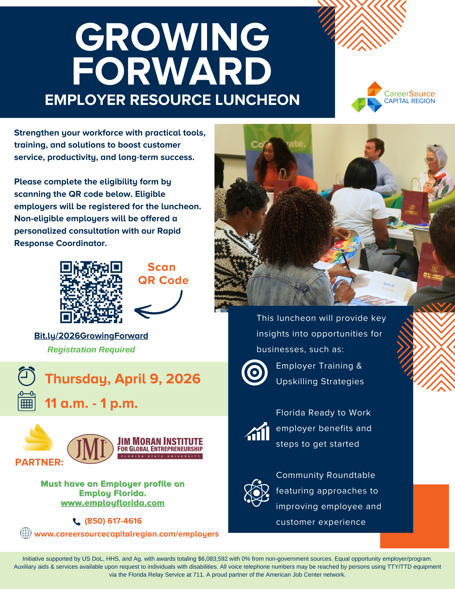 Join us for the Growing Forward Employer Resource Luncheon! This no-cost event brings employers together for meaningful discussions focused on workforce development and retention strategies.